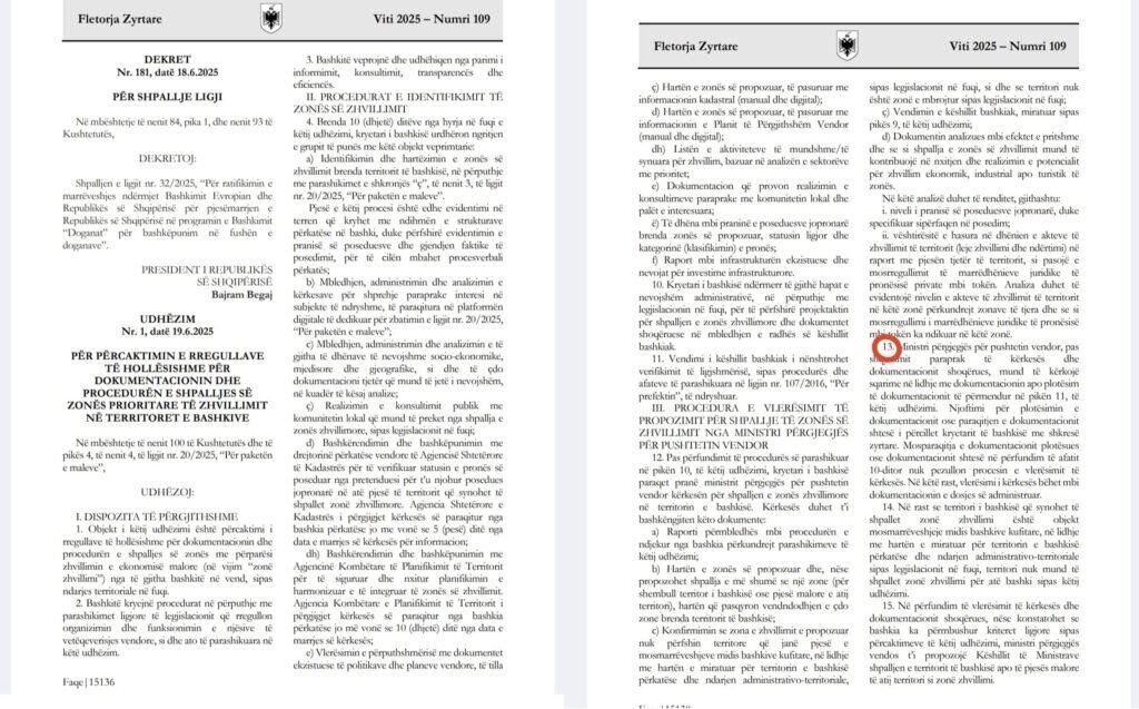 In what many experts are calling one of the most blatant grabs for power in post-communist Albania, the country’s Minister for Local Government has just given himself the power to approve or block any development decision made by elected municipal councils.